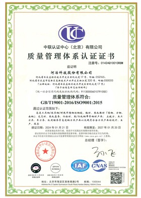 2000年10月,公司依據(jù)ISO9001:1994標(biāo)準(zhǔn),建立了質(zhì)量管理體系,通過了中國(guó)機(jī)械工業(yè)質(zhì)量體系認(rèn)證中心(現(xiàn)中聯(lián)認(rèn)證中心北京有限公司)認(rèn)證;