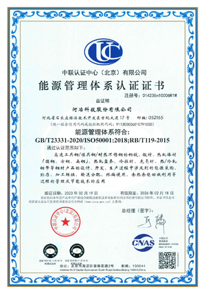 2020年2月,公司依據(jù)GB/T23331-2012/ISO50001:2011標(biāo)準(zhǔn),建立了能源管理體系,通過了中聯(lián)認(rèn)證中心(北京)有限公司認(rèn)證;